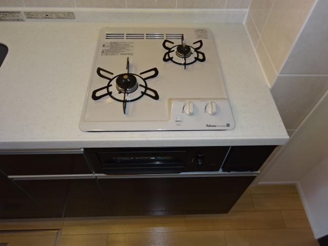 | キッチン | システムキッチン、2口コンロ、ガスコンロ:プロパン、コンロ設置済 | ||