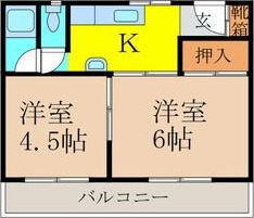 | 間取り | 2K | 間取り詳細 | 洋室6 洋室4.5 K3.5 |