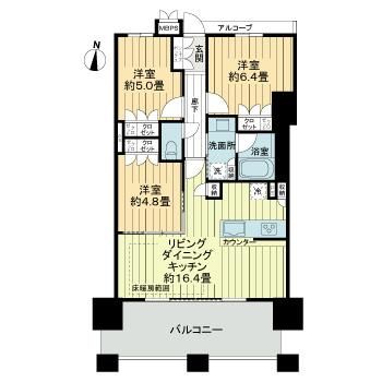 | 間取り | 3LDK | 間取り詳細 | LDK16.4 洋室6.4 洋室5 洋室4.8 |