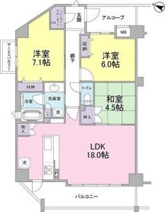 | 間取り | 3LDK | 間取り詳細 | LDK18 和室4.5 洋室7.1 洋室6 |