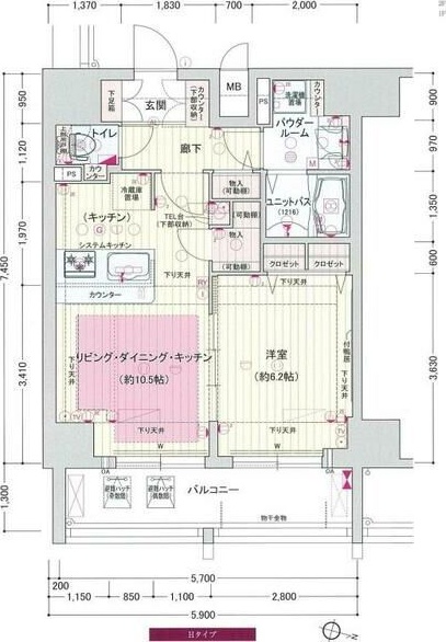 | 間取り | 1LDK | 間取り詳細 | 洋室6.2 |
