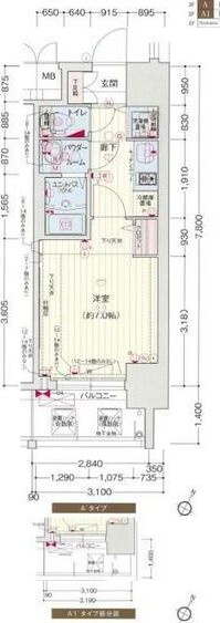 | 間取り | 1K | 間取り詳細 | 洋室7 |