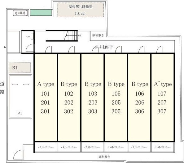 | 設備・サービス | 専用ゴミ置き場、駐輪場、バイク置き場、TVモニター付きインターホン、オートロック、ダブルロック、照明器具、ベランダ・バルコニー、クローゼット、下駄箱、エアコン、エアコン1台、冷房、24H換気システム、BS、UHF(地デジアンテナ対応)、ネット専用回線、インターネット使用料無料 | ||