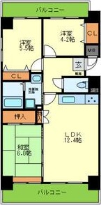 | 間取り | 3LDK | 間取り詳細 | 洋室4.2 洋室5.5 和室6 LDK12.4 |