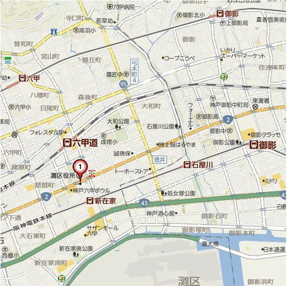 JR東海道本線神戸線 六甲道駅 徒歩3分 阪神本線 新在家駅 徒歩1分 阪急神戸本線 六甲駅 徒歩15分 |