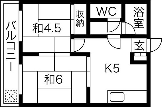 | 間取り | 2DK | 間取り詳細 | DK5 和室6 和室4.5 |