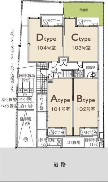 | 設備・サービス | 防犯カメラ、宅配ボックス、駐輪場、TVモニター付きインターホン、オートロック、ベランダ・バルコニー、下駄箱、エアコン、エアコン1台、冷房、24H換気システム、インターネット使用料無料 | ||