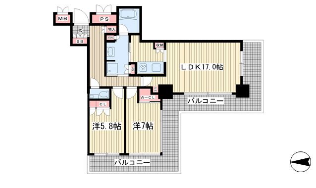 | 間取り | 2LDK | 間取り詳細 | LDK17 洋室7 洋室5.8 |