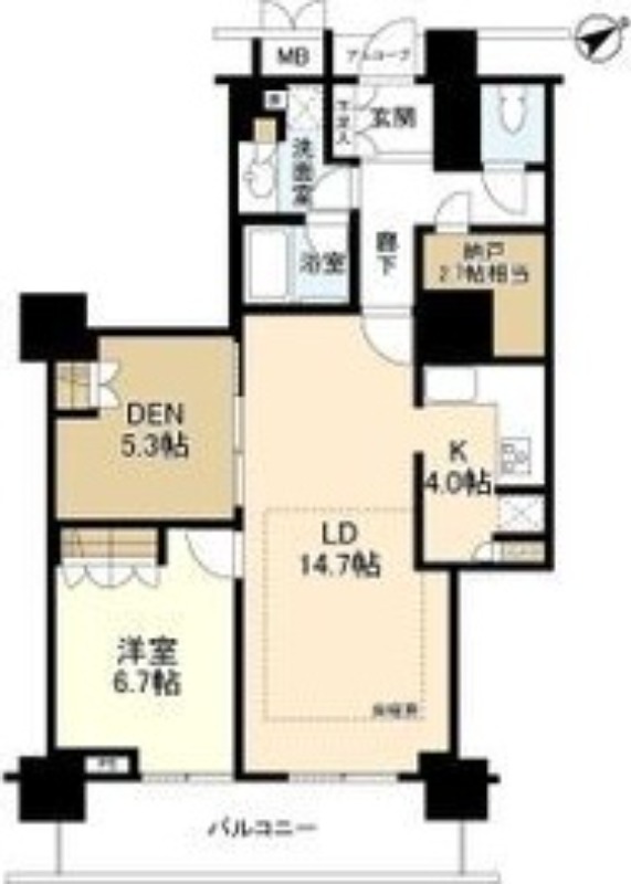 | 間取り | 1SLDK | 間取り詳細 | LD14.7 洋室6.7 S5.3 K4 |
