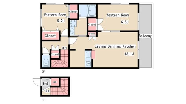 | 間取り | 2LDK | 間取り詳細 | 洋室5.2 洋室6.5 LDK13.1 |