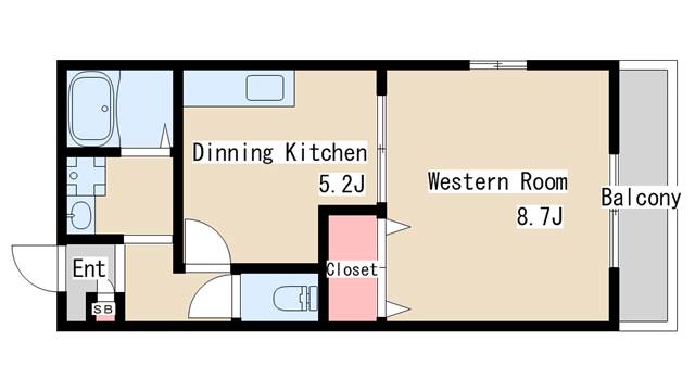 | 間取り | 1DK | 間取り詳細 | 洋室8.7 DK5.2 |