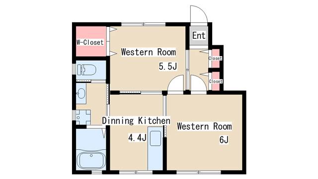 | 間取り | 2DK | 間取り詳細 | 洋室5.5 洋室6 DK4.4 |