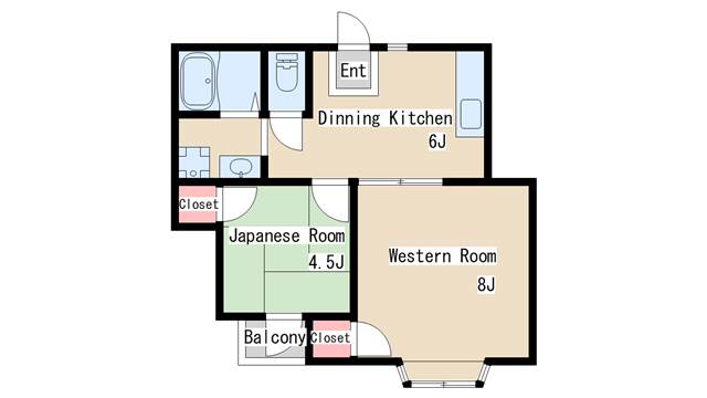 | 間取り | 2DK | 間取り詳細 | 和室4.5 洋室8 DK6 |