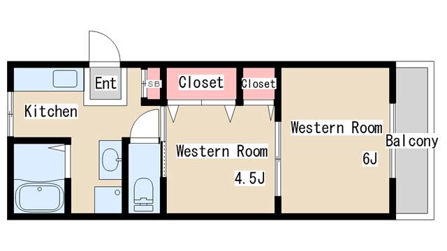 | 間取り | 2K | 間取り詳細 | 和室6 洋室4.5 |