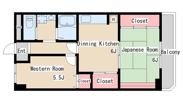 | 間取り | 2DK | 間取り詳細 | 和室6 洋室5.5 |