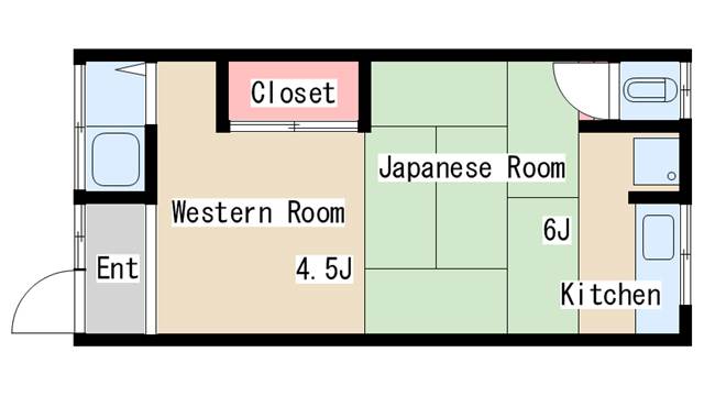 | 間取り | 2K | 間取り詳細 | 和室6 洋室4.5 K2.25 |