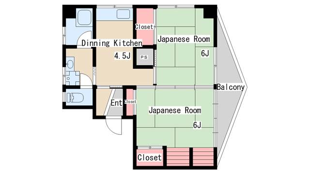 | 間取り | 2DK | 間取り詳細 | 和室6 和室6 DK4.5 |