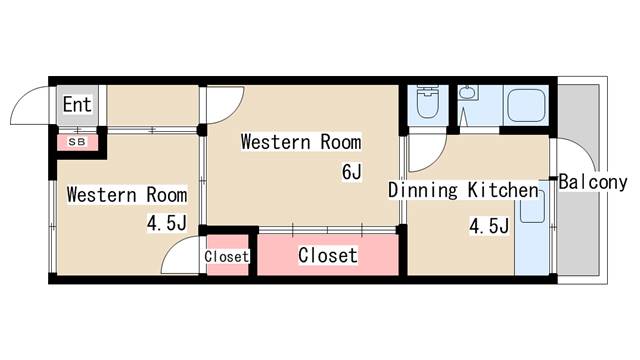 | 間取り | 2DK | 間取り詳細 | 和室4.5 洋室6 DK4.5 |
