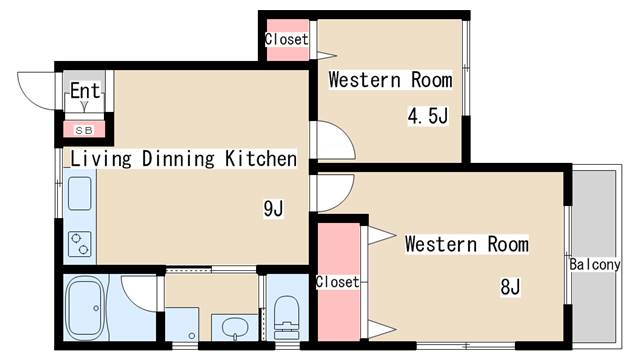 | 間取り | 2LDK | 間取り詳細 | 洋室4.5 洋室8 LDK9 |