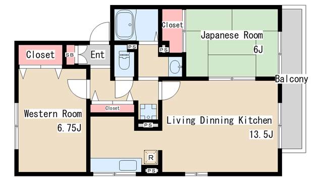 | 間取り | 2LDK | 間取り詳細 | 和室6 洋室6.75 LDK13.5 |