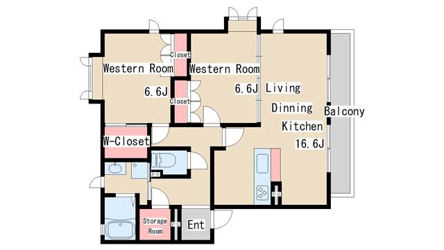 | 間取り | 2LDK | 間取り詳細 | 洋室6.6 洋室6.6 |