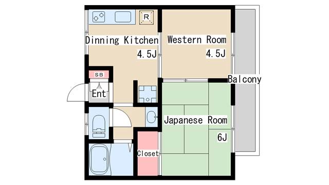 | 間取り | 2DK | 間取り詳細 | 和室6 洋室4.5 DK4.5 |