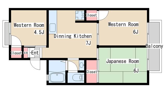| 間取り | 3DK | 間取り詳細 | 和室6 和室6 洋室4.5 |