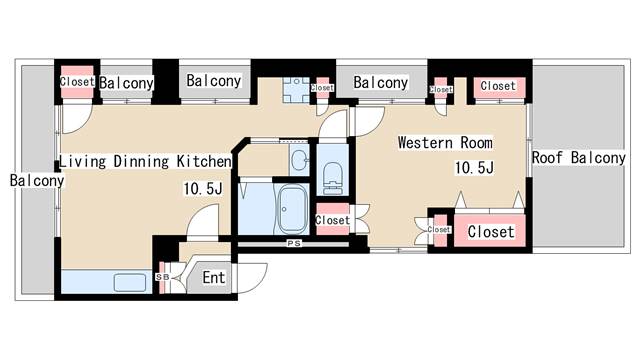 | 間取り | 1LDK | 間取り詳細 | 洋室10.5 LDK10.5 |