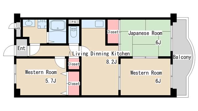 | 間取り | 3LDK | 間取り詳細 | 和室6 洋室5.7 洋室6 |