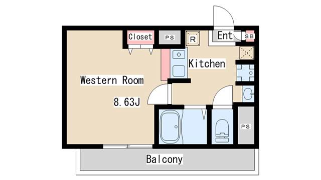 | 間取り | 1K | 間取り詳細 | 洋室8.63 |