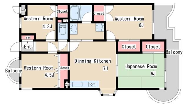 | 間取り | 4DK | 間取り詳細 | 和室6 洋室4.3 洋室4.5 洋室6 |