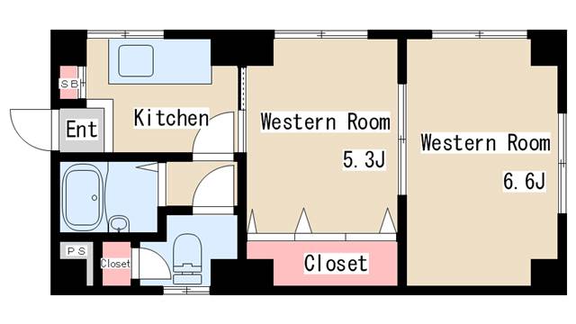 | 間取り | 2K | 間取り詳細 | 洋室5.3 洋室6.6 |