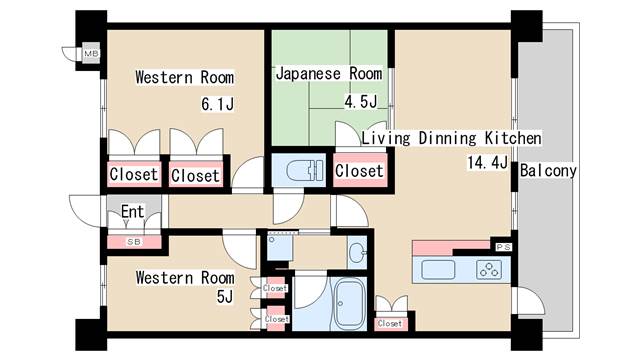 | 間取り | 3LDK | 間取り詳細 | 和室4.5 洋室5 洋室6.1 LDK14.4 |