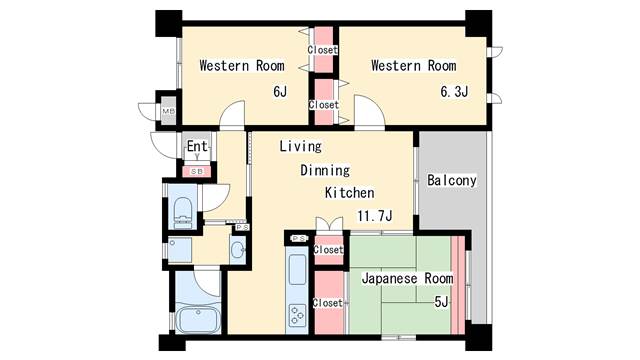 | 間取り | 3LDK | 間取り詳細 | 和室5 洋室6 洋室6.3 LDK11.7 |