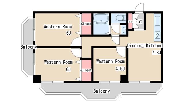 | 間取り | 3DK | 間取り詳細 | 洋室4.5 洋室6 洋室6 |