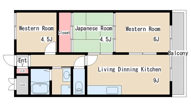 | 間取り | 3LDK | 間取り詳細 | 和室4.5 洋室4.5 洋室6 |