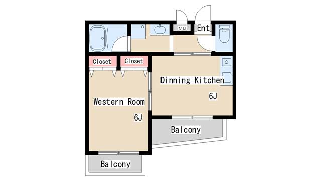 | 間取り | 1DK | 間取り詳細 | 洋室6 DK6 |