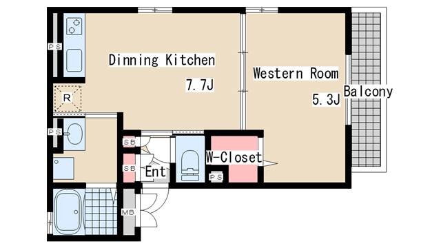 | 間取り | 1DK | 間取り詳細 | 洋室5.3 DK7.7 |