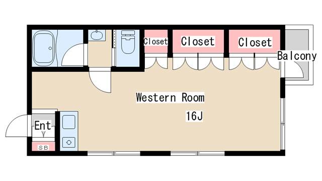 | 間取り | ワンルーム | 間取り詳細 | 洋室16 |