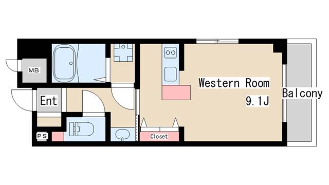 | 間取り | ワンルーム | 間取り詳細 | 洋室9.1 |