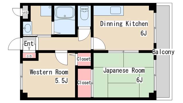 | 間取り | 2DK | 間取り詳細 | 和室6 洋室5.5 DK6 |