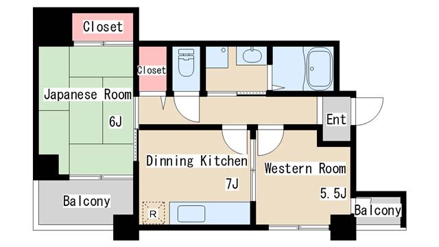 | 間取り | 2DK | 間取り詳細 | 和室6 洋室5.5 DK7 |