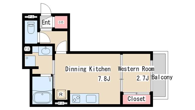 | 間取り | 1DK | 間取り詳細 | 洋室2.7 |
