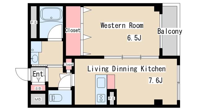 | 間取り | 1DK | 間取り詳細 | 洋室6.5 DK7.6 |