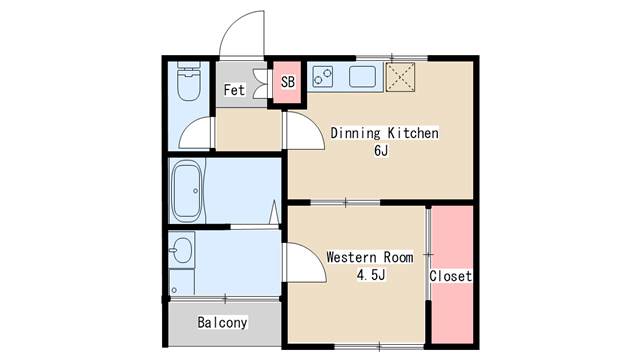| 間取り | 1DK | 間取り詳細 | 洋室4.5 DK6 |