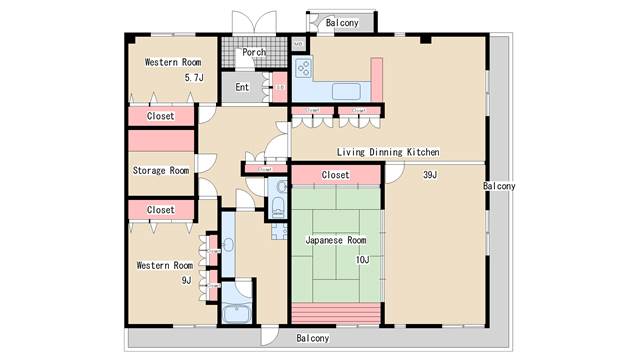 | 間取り | 3LDK | 間取り詳細 | 和室6 洋室5.7 洋室9 |