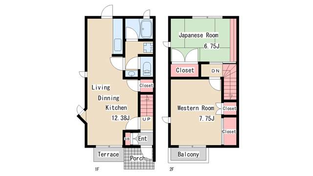 | その他・特徴 | 閑静な住宅街、子供可、二人入居可、ファミリータイプ、カップル向け、新婚向け、オンライン内見可、オンライン相談可、ペット相談、陽当り良好、3面採光、南向きリビング、通風良好、角部屋、フローリング、畳コーナー、メゾネット、玄関ポーチ、玄関ホール、マルチメディアコンセント、テラス、専用庭、公共下水、公営水道、都市ガス | ||