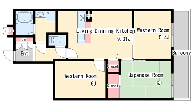 | 間取り | 3LDK | 間取り詳細 | 和室6 洋室6 洋室5.4 LDK9.3 |