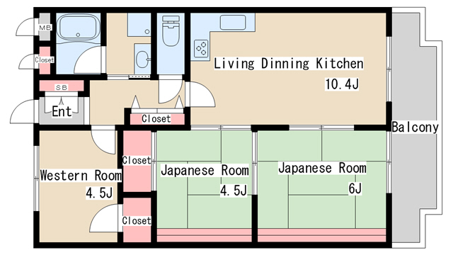 | 間取り | 3LDK | 間取り詳細 | 和室4.5 和室6 洋室4.5 LDK10.4 |