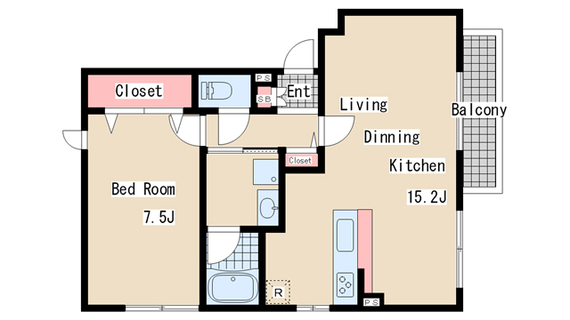 | 間取り | 1LDK | 間取り詳細 | 洋室7.5 LDK15.2 |